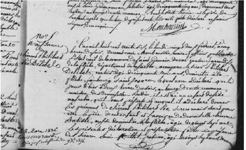 Acte de naissance de Léo Delibes à Saint-Germain-du-Val