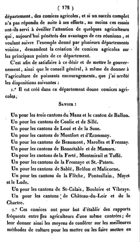 Création des comices agricoles - Bulletin de la Société d'agriculture, sciences et arts de la Sar..