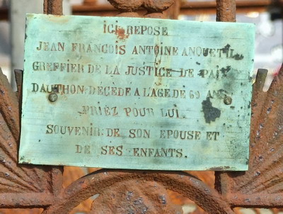 La plaque sur sa tombe au cimetière d'Authon