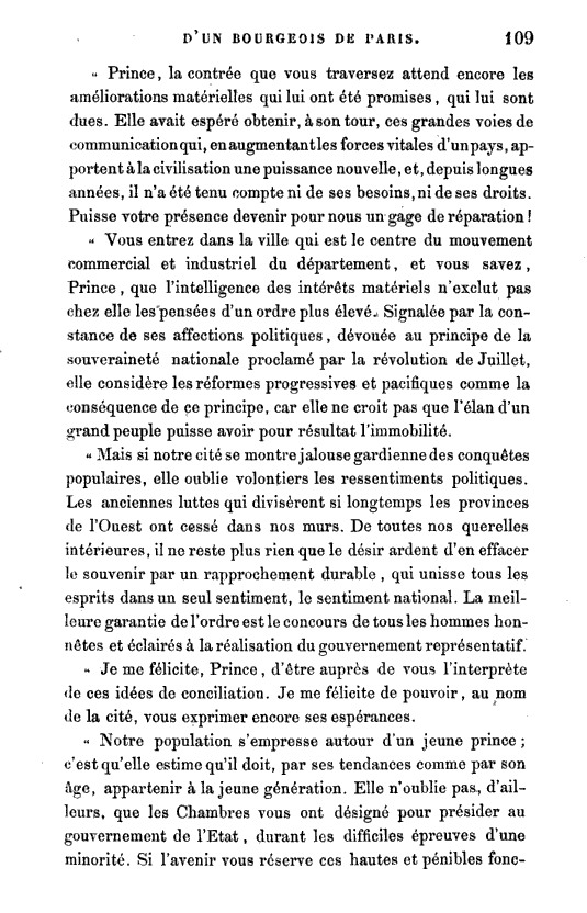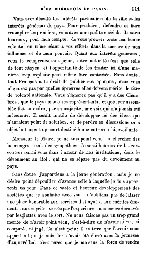 Discours de Ariste Jacques TROUVE-CHAUVEL, le 07/08/1843 extrait de "Mémoires d'un bourgeois de Par..